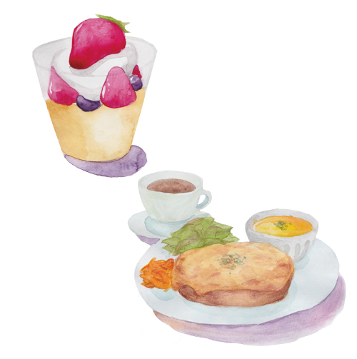 水彩絵具カフェ系の食品イラストです。