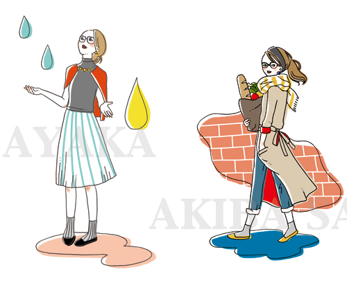 photoshop 水彩絵具女性ファッションのイラストカットです。